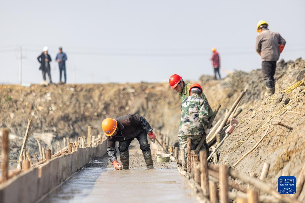 2月16日,工人在浙江省湖州市長(zhǎng)興縣虹星橋鎮(zhèn)修建水渠。
