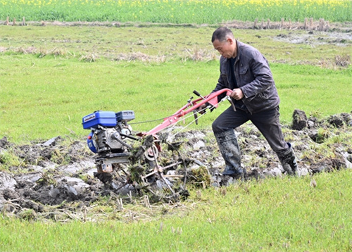 3月2日,湖南省隆回縣金石橋鎮(zhèn)黃金井村,農民駕駛拖拉機翻耕稻田。天氣轉暖,當?shù)剞r戶搶抓農時開展春耕生產,田間地頭一片忙碌景象。(賀上升攝)