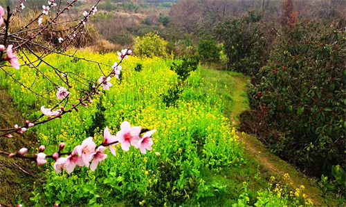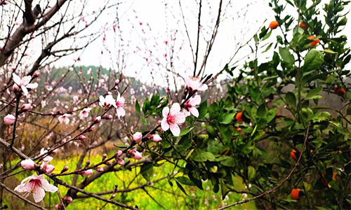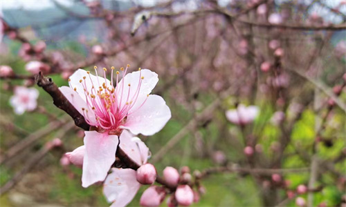 桃之夭夭,灼灼其華。陽(yáng)春三月,走進(jìn)新田縣新隆鎮(zhèn)龍會(huì)塘黃牛沖村的桃花觀賞基地,瞬間感覺(jué)春意襲來(lái)。一簇簇盛開(kāi)的桃花隨風(fēng)舞動(dòng),別有風(fēng)情。深深淺淺的粉紅花瓣,與枝頭嫩綠的桃葉相映,滿(mǎn)園盡是淡淡甜甜的花香。居高處俯瞰,桃林勝景盡收眼底,花下漫步,滿(mǎn)園春色惹人醉,令人心曠神怡。(何新瑞 攝影)