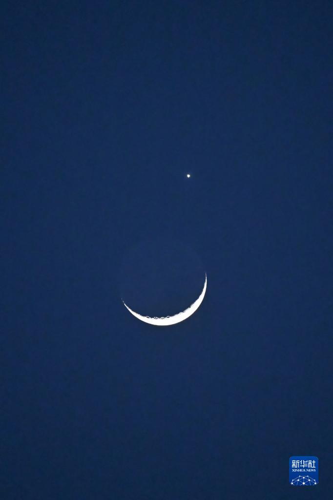 當晚,一輪彎彎的月牙與太陽系最明亮的行星在天空上演一場奇妙的天象——月掩金星。