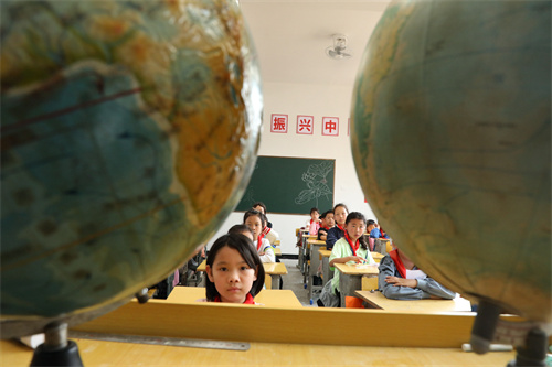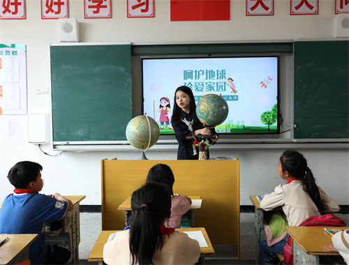 4月20日,在湖南省保靖縣毛溝小學(xué),老師利用地球儀讓學(xué)生認(rèn)識(shí)地球、了解地球的構(gòu)造等。在世界地球日來(lái)臨之際,該校通過(guò)播放保護(hù)地球、節(jié)約資源視頻,介紹節(jié)約用水、愛(ài)護(hù)綠地小常識(shí)等多種方式,教育學(xué)生從小養(yǎng)成熱愛(ài)地球、節(jié)約資源、愛(ài)護(hù)環(huán)境的好習(xí)慣,共同保護(hù)美好家園。(俞采華 陳亞平)