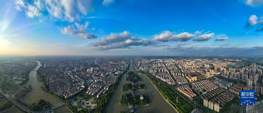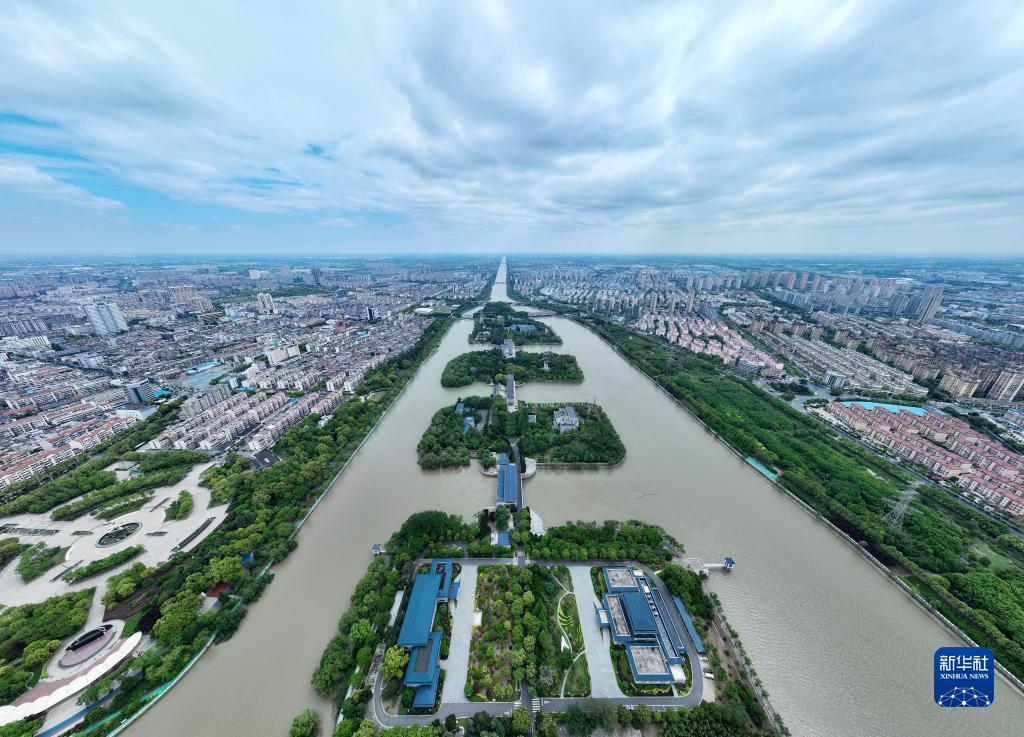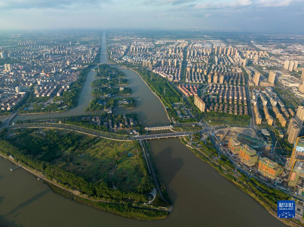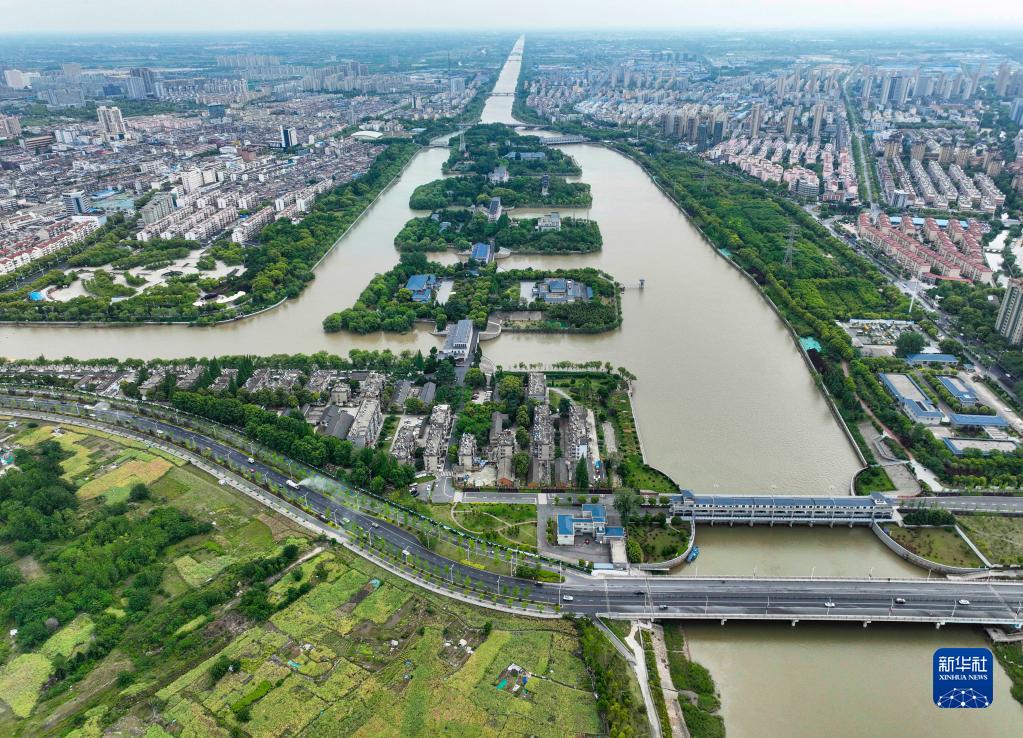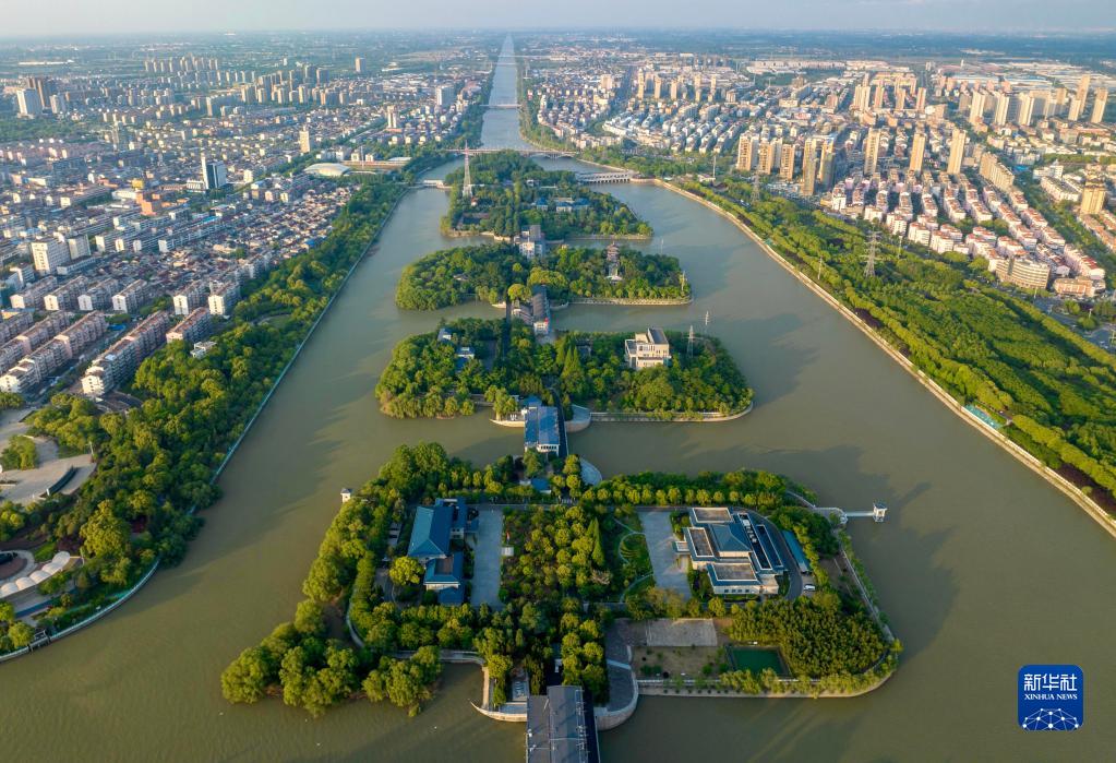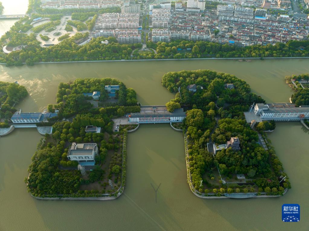5月7日在江蘇省揚州市拍攝的江都水利樞紐(無人機全景照片)。新華社發(fā)(周社根 攝)