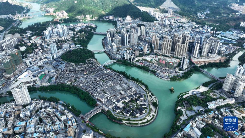 碧水環(huán)抱的貴州省銅仁市中南門古城(5月26日攝,無人機照片)。
