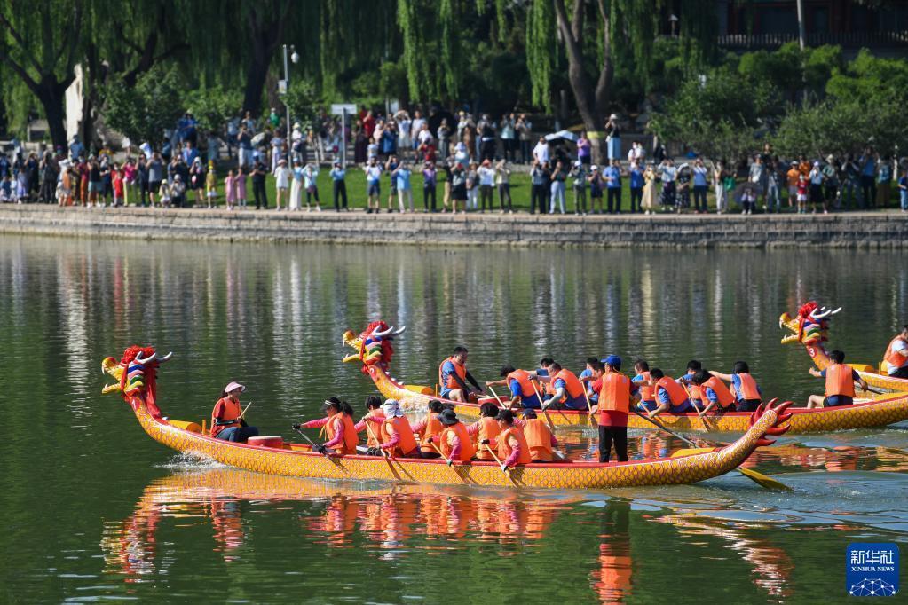 當(dāng)日,2023龍?zhí)抖宋缥幕?jié)活動(dòng)在北京市東城區(qū)龍?zhí)豆珗@舉辦,包括龍舟比賽、文藝演出、展覽互動(dòng)體驗(yàn)等。游客在這里共度端午節(jié)日,體驗(yàn)多彩民俗。