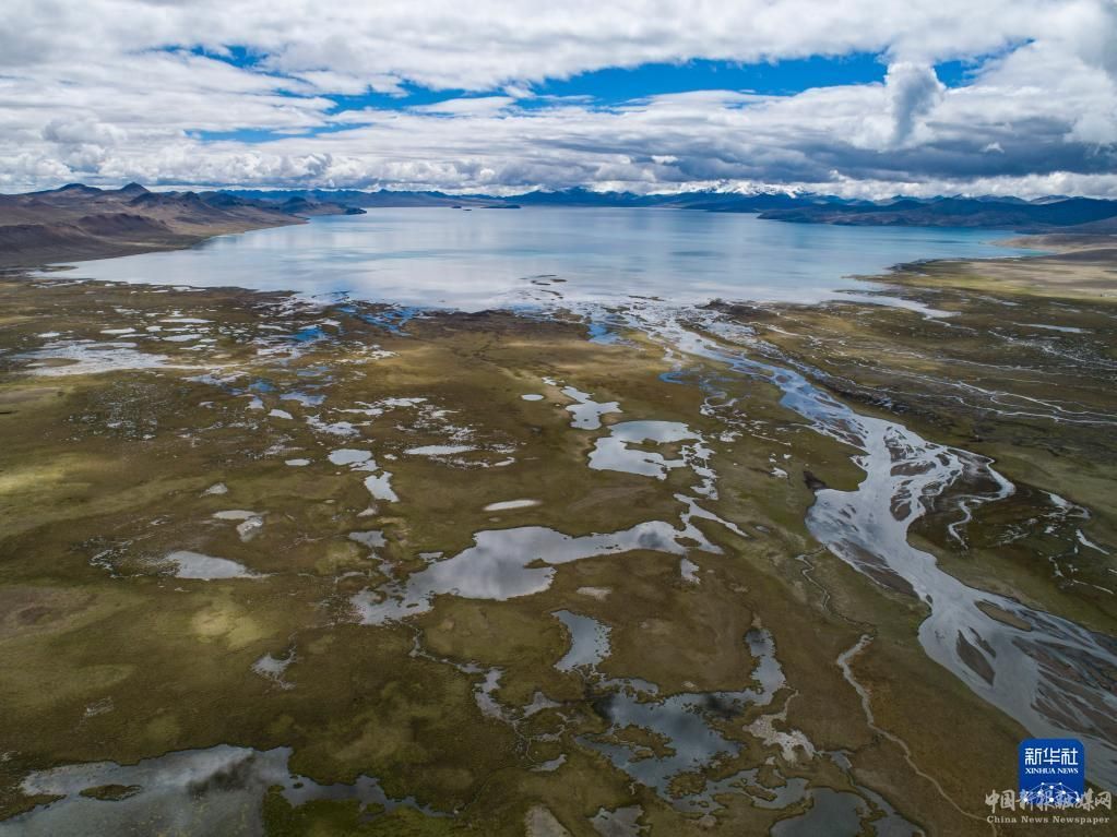 這是7月4日拍攝的普莫雍錯湖邊的濕地(無人機照片)。