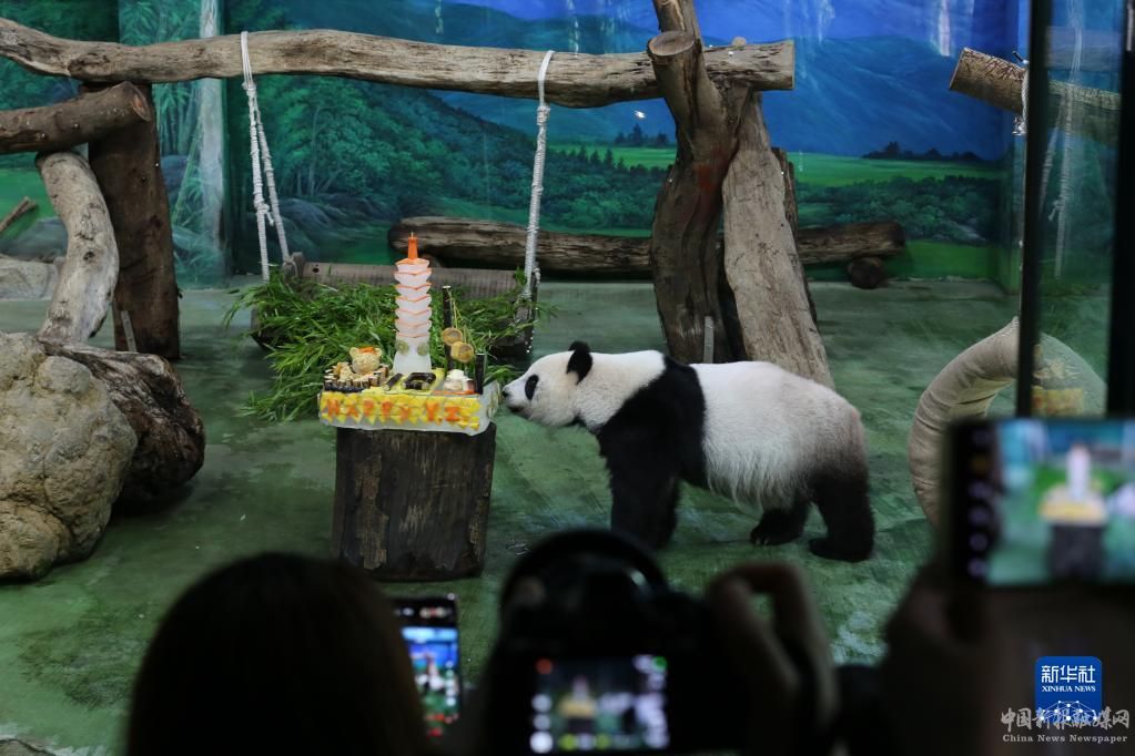 當(dāng)日,臺北市動物園為大陸贈臺大熊貓“團團”和“圓圓”的女兒“圓仔”慶祝10周歲生日。