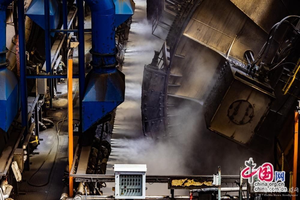 翻車(chē)機(jī)運(yùn)用本質(zhì)長(zhǎng)效抑塵技術(shù)有效控制煤炭揚(yáng)塵。中國(guó)網(wǎng)記者 鄭亮攝
