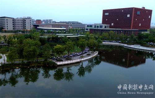 2023年9月7日清晨,安徽省合肥市廬江縣第二中學(xué),4000多名學(xué)生圍繞校園內(nèi)的文翁湖進(jìn)行晨跑,青年學(xué)子和湖邊樹木紛紛倒影湖中,與晨光云影相映,繪就了一幅美不勝收的初秋校園晨練圖。(巢志斌 攝影報(bào)道)