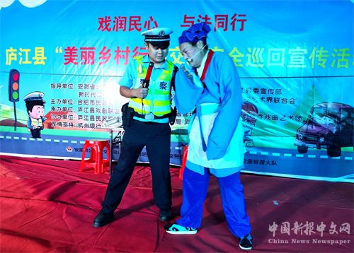 演出中,演員在節(jié)目中以生動的故事情節(jié),巧妙嵌入公安交警的以案釋法,向在場觀看演出的村民進行了酒駕、醉駕以及佩戴頭盔等項交通安全警示教育,收到良好效果。據(jù)了解,演出將在該縣各地巡回推出。       (巢志斌  攝)