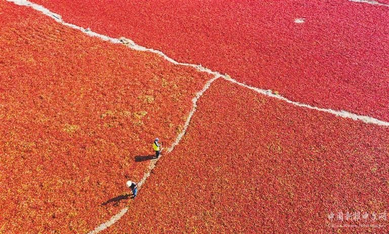 ?、谛陆S吾爾自治區(qū)昌吉市二六工鎮(zhèn)紅星村,村民在晾曬辣椒。何 龍攝(中經(jīng)視覺)