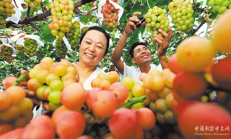 ?、侔不帐″∠h四鋪鎮(zhèn)湖涯村,村民在葡萄園忙采摘。 李 鑫攝(中經(jīng)視覺)
