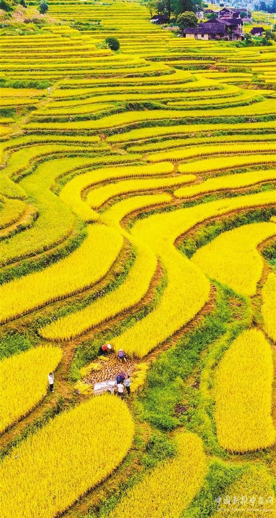 ?、藓鲜|安舜皇山國(guó)家森林公園管理局塘家梯田,村民開鐮收割。嚴(yán) 潔攝(中經(jīng)視覺)