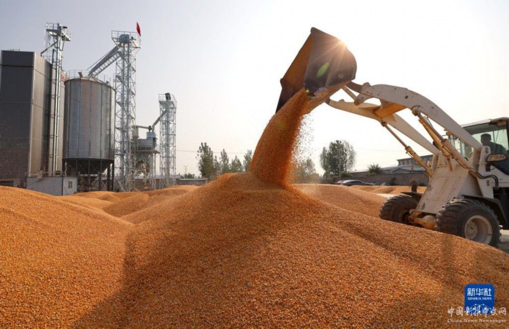 10月8日,在山東省棗莊市西王莊鎮(zhèn),農(nóng)機(jī)手操作機(jī)械傳運(yùn)利用烘干設(shè)備烘干的玉米。金秋時節(jié),各地農(nóng)民搶抓農(nóng)時,有序開展秋收、秋種、秋管等農(nóng)事活動,田間地頭呈現(xiàn)一派繁忙景象。新華社發(fā)(孫中喆 攝)