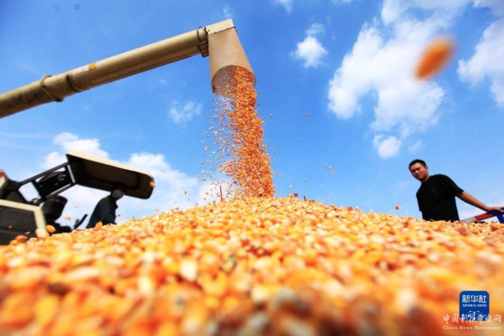 10月9日,河北省遵化市劉備寨鄉(xiāng)農(nóng)民將收獲的玉米裝入糧囤儲藏(無人機(jī)照片)。金秋時節(jié),各地農(nóng)民搶抓農(nóng)時,有序開展秋收、秋種、秋管等農(nóng)事活動,田間地頭呈現(xiàn)一派繁忙景象。新華社發(fā)(劉滿倉 攝)