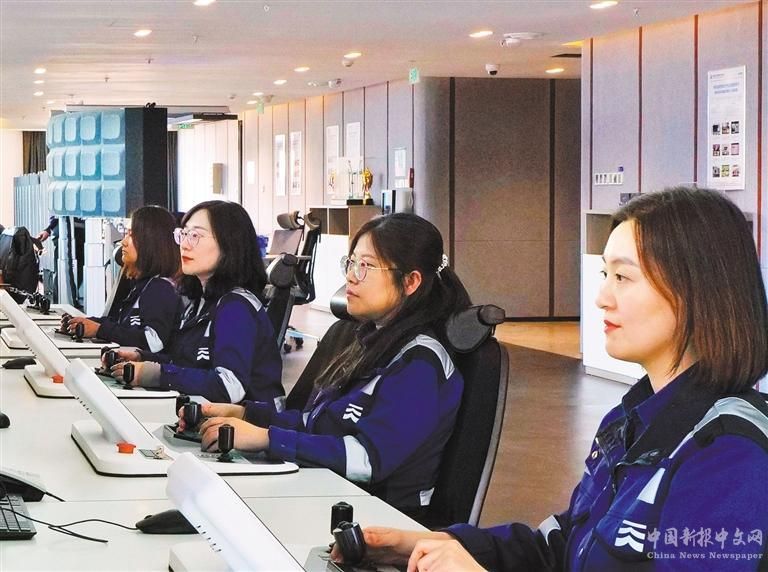 全部由女性司機(jī)組成的天津港第二集裝箱碼頭有限公司操作部彩虹班組,員工堅(jiān)守崗位生產(chǎn)。