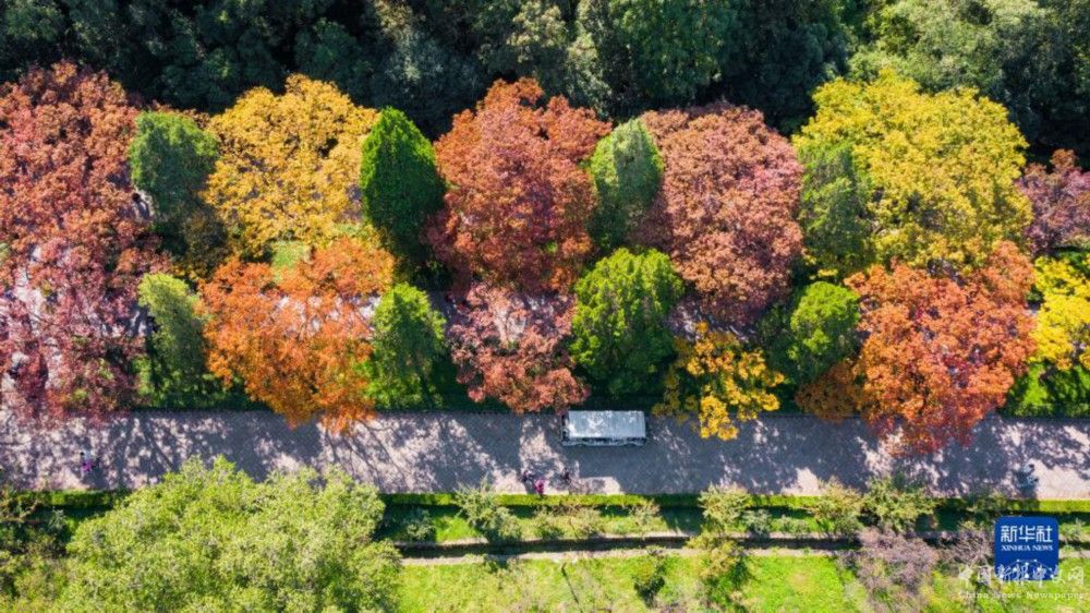 10月21日拍攝的南京明孝陵景區(qū)石象路秋景(無人機照片)。