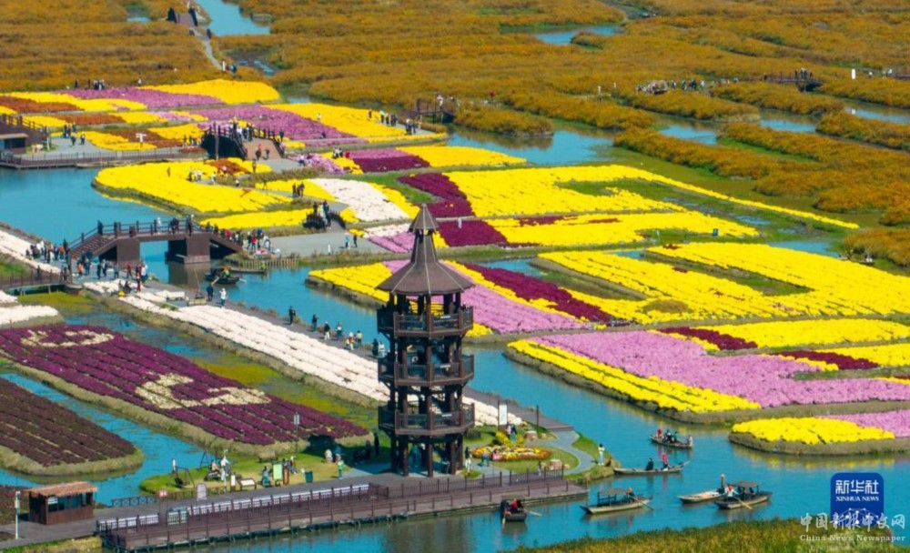 10月21日,游客在江蘇省興化市千垛景區(qū)賞菊游玩(無人機照片)。
