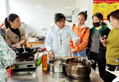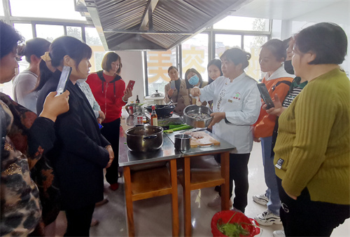 2023年10月25日,安徽省合肥市廬江縣一諾家政服務(wù)中心,烹飪老師在精心指導(dǎo)參訓(xùn)學(xué)員如何進(jìn)行酸菜魚烹制。