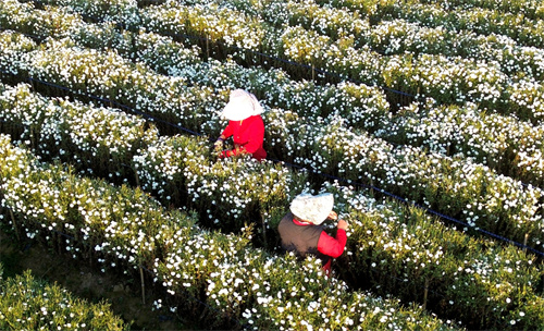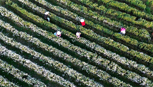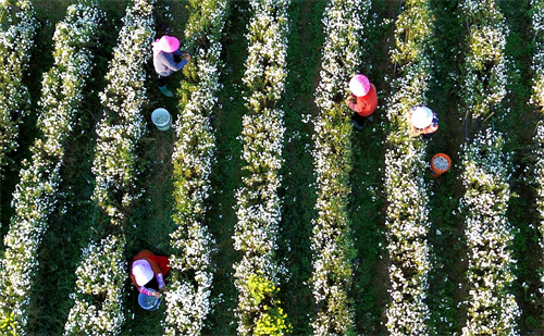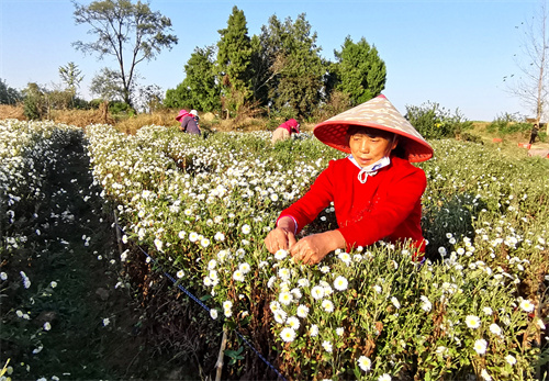 廬江縣以“黨支部+基地+村民”的黨建引領(lǐng)模式,激活鄉(xiāng)村振興“源動力”,因地制宜選準(zhǔn)發(fā)展路徑,加大扶持力度,鼓勵大戶大力發(fā)展生態(tài)黃山貢菊、金絲皇菊、桃菊、綠萼梅等特色品種進行種植,吸納周邊群眾長年就近就業(yè),增加收入,念好鄉(xiāng)村振興“致富經(jīng)”。(巢志斌  攝)