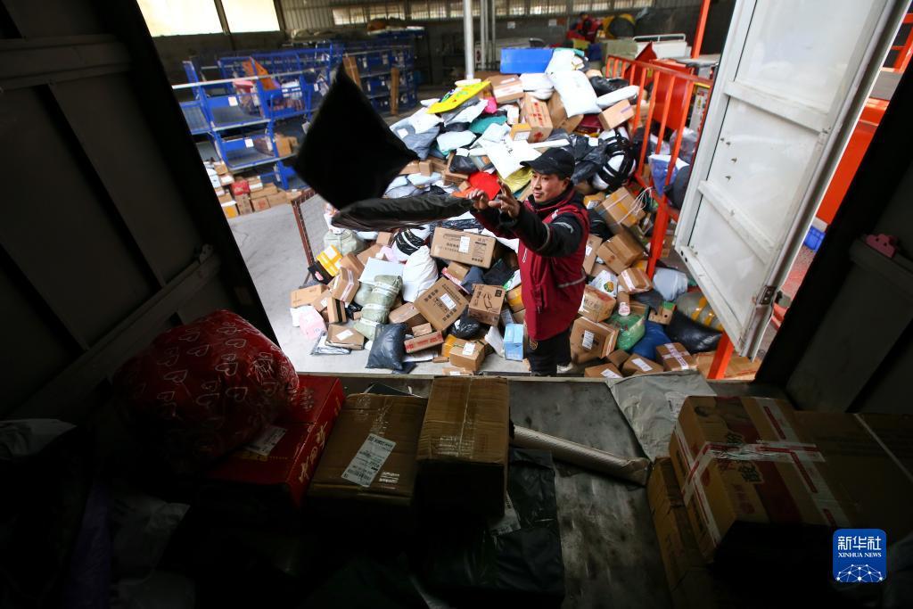 11月9日,在山東省鄒平市,工作人員在一家物流倉(cāng)儲(chǔ)基地分揀快遞。