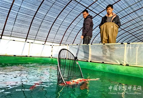 錦鯉是一種名貴的大型觀賞魚,被譽為“活的藝術(shù)品”“水中活寶石”和“觀賞魚之王”。2017年,史光平兄弟倆從上海返鄉(xiāng)流轉(zhuǎn)70多畝魚塘,重點繁育紅白、大正、昭和等7個中、高檔錦鯉品種。經(jīng)過不斷摸索,史光平的魚場目前已擁有自己的種魚儲備系統(tǒng),每年固定6到8胎的孵化量,總產(chǎn)量在500萬尾左右,產(chǎn)品通過微拍堂等網(wǎng)絡(luò)平臺俏銷全國各地。          (巢志斌 攝影報道)