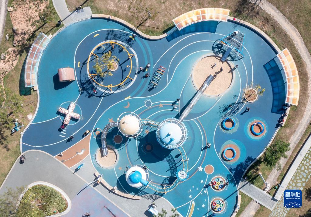 11月17日,家長帶著兒童在深圳北站中心公園的星球主題樂園玩耍(無人機照片)。