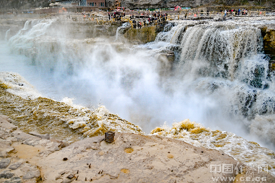 壺口瀑布“水里冒煙”奇景。中國經(jīng)濟網(wǎng)記者 劉天一攝