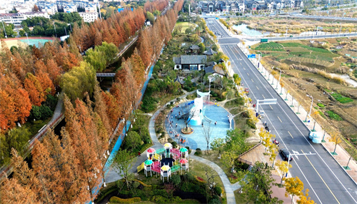2023年12月8日,安徽省合肥市廬江縣東顧山街道城區(qū)一角,微公園掩映在綠樹園林當(dāng)中,市民每天生活在如畫般的風(fēng)景里。