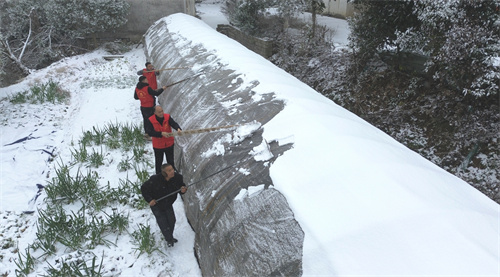 2023年12月18日,安徽省合肥市廬江縣食用菌協(xié)會(huì)組織黨員志愿者來到該縣廬城鎮(zhèn)塔山社區(qū),為殘疾村民、食用菌種植戶馬發(fā)應(yīng)的蘑菇大棚清除棚面積雪,以免雪厚壓損大棚。(巢志斌 攝)