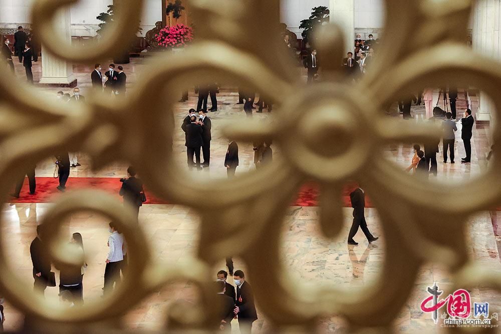 3月10日上午,十四屆全國(guó)人大一次會(huì)議舉行第三次全體會(huì)議,選舉產(chǎn)生新一屆國(guó)家領(lǐng)導(dǎo)人。會(huì)議開始前,代表們?cè)谌嗣翊髸?huì)堂交流。 中國(guó)網(wǎng) 董寧攝影