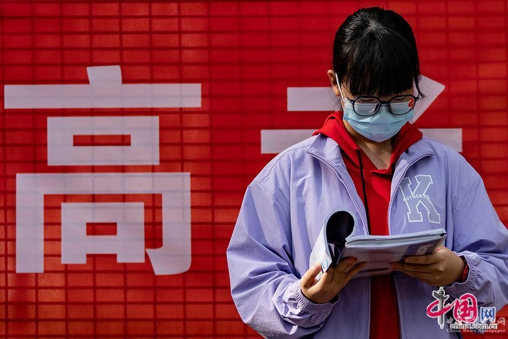 6月7日,2023年高考大幕正式開啟。北京八中考點(diǎn)考生在場(chǎng)外復(fù)習(xí)。中國(guó)網(wǎng) 鄭亮攝影