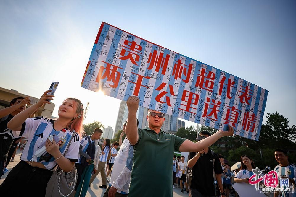 6月15日,梅西將帶領(lǐng)阿根廷國(guó)家隊(duì)在北京新工體與澳大利亞隊(duì)進(jìn)行一場(chǎng)友誼賽。來自貴州的“村超”代表來到工體。中國(guó)網(wǎng) 鄭亮攝影