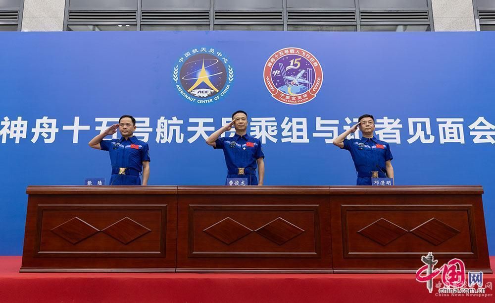 7月31日,神十五乘組航天員與媒體記者見面。中國(guó)網(wǎng) 楊佳攝影