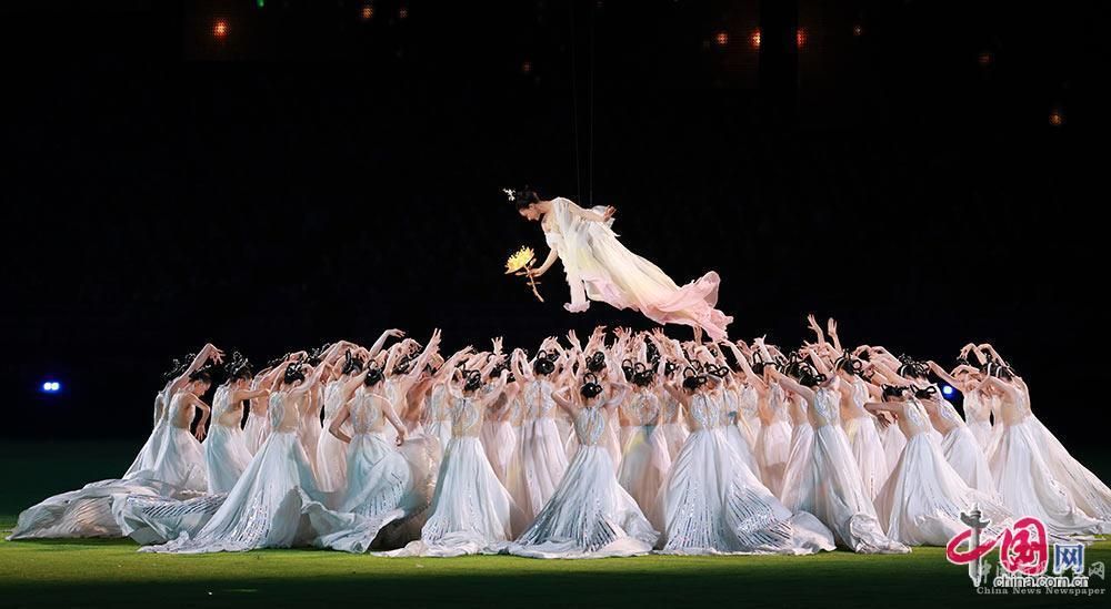 10月8日,杭州亞運(yùn)會(huì)舉行閉幕式。歌舞表演中,代表荷花、桂花的“荷桂少女”搖曳生姿。中國(guó)網(wǎng) 董寧攝影