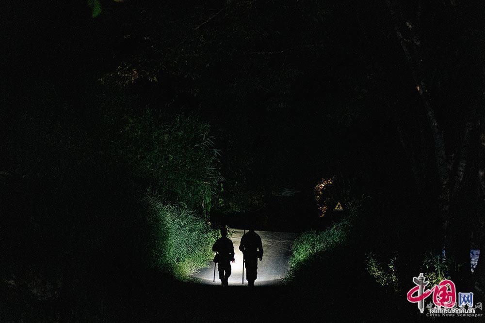 11月17日,執(zhí)勤的武警戰(zhàn)士在海南島鸚哥嶺自然保護(hù)區(qū)南麓的密林中巡邏。中國(guó)網(wǎng) 楊佳攝影