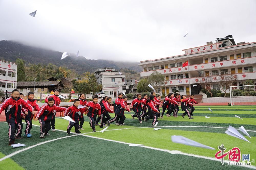 12月15日,貴州印江新寨鎮(zhèn)凱望小學(xué)的孩子們放飛紙飛機(jī)。中國(guó)網(wǎng) 趙娜攝影