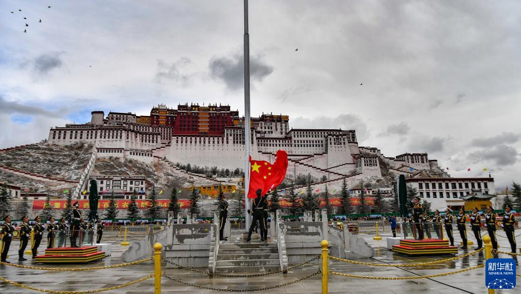 3月28日,拉薩布達(dá)拉宮廣場舉行升旗儀式。