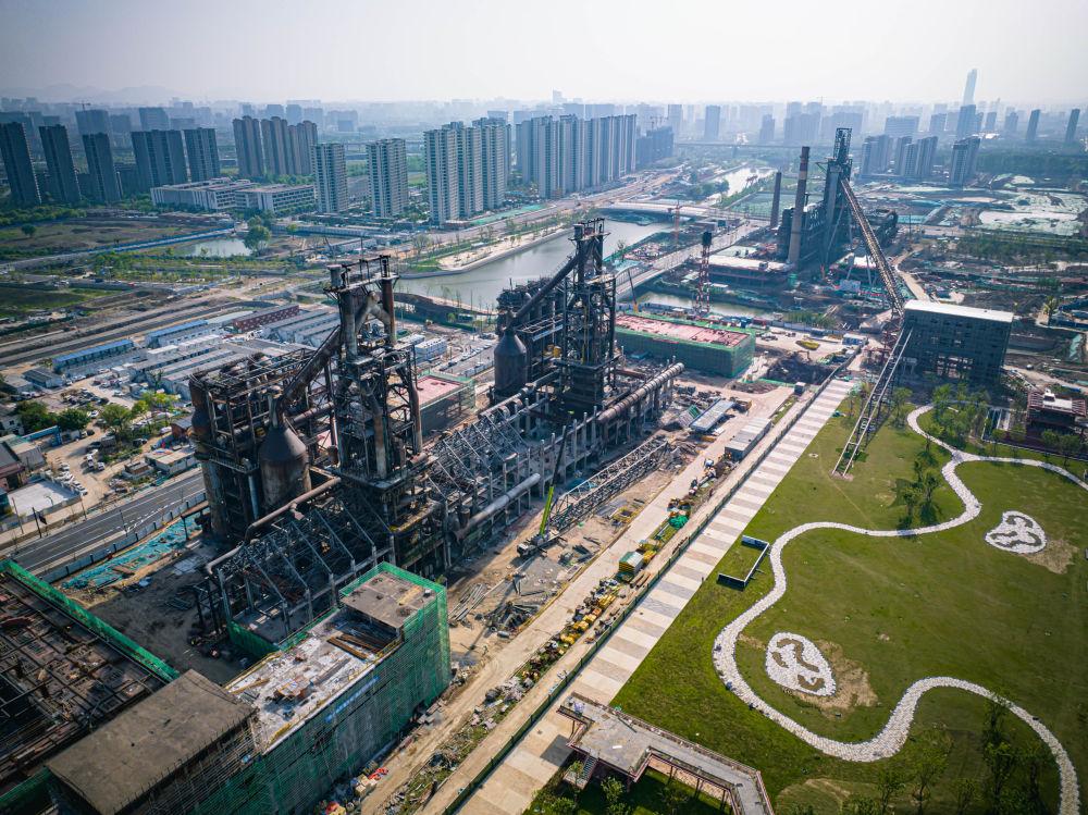 建設(shè)中的杭鋼工業(yè)舊址公園(2023年4月17日攝,無人機照片)。新華社記者 江漢 攝