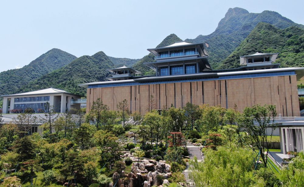 北京中軸線北延、燕山腳下,一片大氣恢弘的建筑群掩映在青山茂林之中,彰顯中華文化神韻。