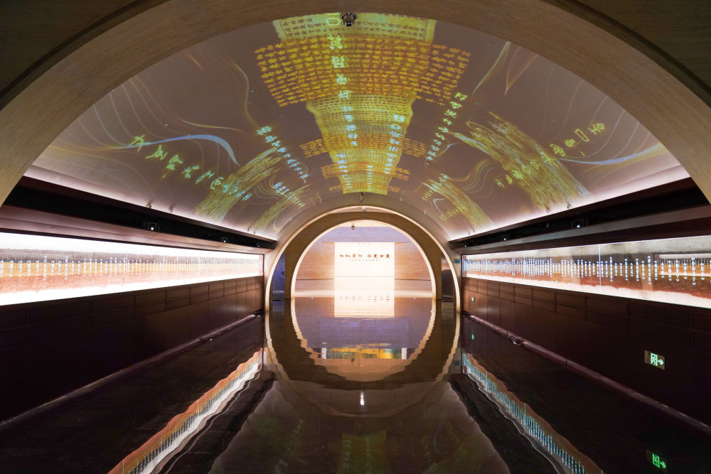 漫步其中,從詮釋藏書文化的“文瀚八景”到國(guó)家書房?jī)?nèi)源于宋代天文石刻圖的星空穹頂,從呈現(xiàn)中國(guó)歷代書法繪畫經(jīng)典的文化長(zhǎng)廊到洞庫(kù)拱頂獨(dú)具東方美學(xué)韻味的飛天壁畫,富含中國(guó)文化元素的設(shè)計(jì)隨處可見。