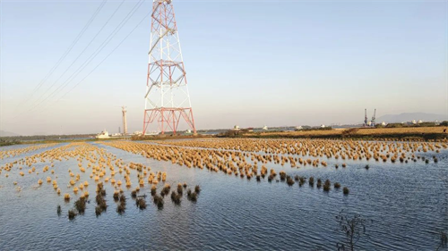 ▲海邊咸淡水交匯灘涂上的禾蟲稻,為禾蟲提供了適宜的生長環(huán)境。
