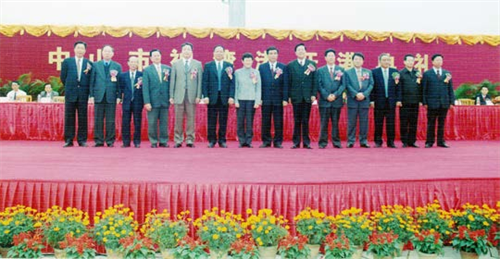 ▲2003年3月18日,國家交通部水運(yùn)司副司長彭翠紅(左七)、廣東省政府副秘書長徐尚武(左六)、中共中山市委書記崔國潮(左八)等領(lǐng)導(dǎo)參加神灣港開港典禮。