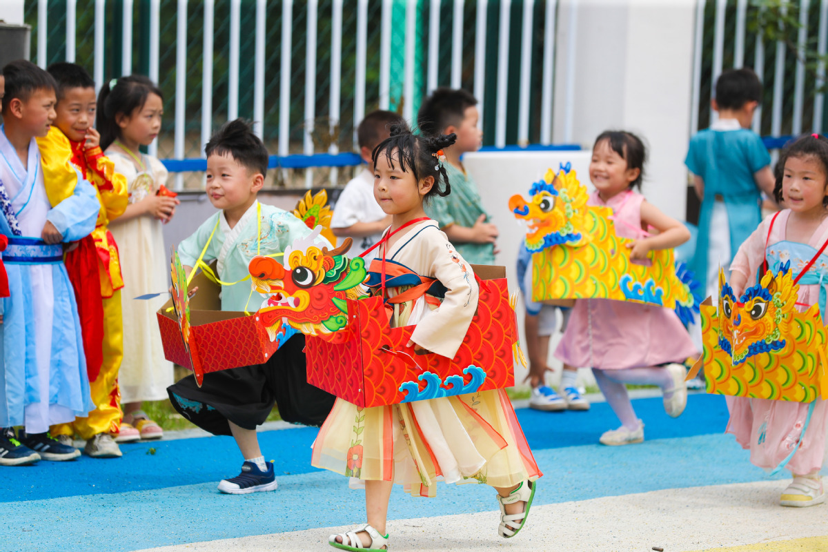 6月20日,浙江工業(yè)大學附屬秋山幼兒園,小朋友參加小小龍舟趣味賽。王正 攝