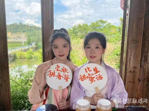 為鄉(xiāng)村產(chǎn)業(yè)提振,實(shí)踐團(tuán)結(jié)合自身藝術(shù)專業(yè)特長(zhǎng),身著漢服,歌詠古調(diào),嘗試了漢服助農(nóng)直播,開(kāi)展了“青春聚力,甜蜜興農(nóng)”、“小扇引微涼,悠悠夏日長(zhǎng)”兩場(chǎng)主題直播,通過(guò)自媒體引流的方式帶動(dòng)當(dāng)?shù)胤涿坜r(nóng)產(chǎn)品與原創(chuàng)文創(chuàng)作品的發(fā)展,以青春智慧助力鄉(xiāng)村農(nóng)旅產(chǎn)業(yè)振興。
