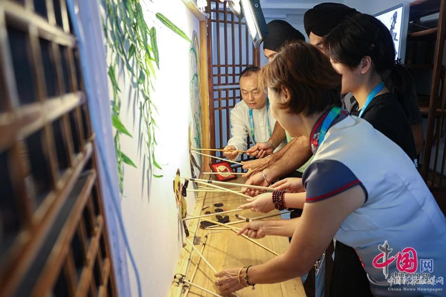 每天,大運(yùn)村互動(dòng)體驗(yàn)中心都會(huì)舉行56場(chǎng)非遺技藝、傳統(tǒng)文化體驗(yàn)活動(dòng),包括剪紙、蜀繡、皮影戲、年畫、竹編等多項(xiàng)非遺代表性項(xiàng)目技藝。中國網(wǎng)記者 倫曉璇 攝
