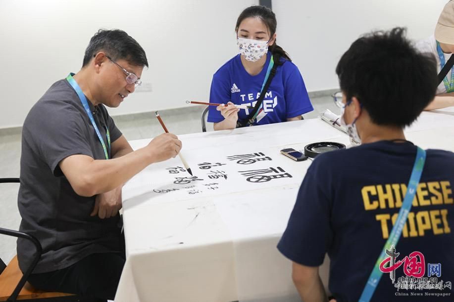 在外國運(yùn)動(dòng)員眼中,中國非遺文化和傳統(tǒng)文化奧妙無窮,而對(duì)于中國運(yùn)動(dòng)員來說,傳統(tǒng)文化也同樣充滿魅力。在漢服體驗(yàn)室里,一名中國運(yùn)動(dòng)員穿上漢服后,對(duì)著鏡子美美記錄下自己的 “新造型”,而在另一邊的書法教室,四川師大書法學(xué)院教授王興國正在向幾名來自中國臺(tái)北代表隊(duì)的運(yùn)動(dòng)員演示不同“福”的寫法:“寫‘福’是中華民族的傳統(tǒng),尤其是在過年的時(shí)候,家家戶戶都要掛。”兩岸文化同根同源,在王興國的指導(dǎo)下,運(yùn)動(dòng)員們也認(rèn)真地寫起了“福”字。