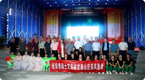 詩眼看龍泉,文筆話美景。8月14至16日,由西安老戰(zhàn)士文友會(huì)和絲路文化院、絲綢之路國際詩人聯(lián)合會(huì)、龍泉山莊共同舉辦的“走進(jìn)中國最美鄉(xiāng)村龍泉山莊采風(fēng)筆會(huì)”,在陜西涇陽縣安吳鎮(zhèn)龍泉山莊舉行,10多位軍旅師團(tuán)級(jí)以上老戰(zhàn)士:李永強(qiáng)、鄭治全、鐘峻青、田繼光、張紀(jì)方、劉華寧、胡祿林、黃學(xué)建、王福榮、馮根年、劉奇亮、徐映珉、劉權(quán)壽、張世昌、賀測(cè)亮,和絲路行吟詩人王芳聞、董發(fā)亮、王海霞、黨端靖、伏萍、林小春、王湘萍,朗誦家張全、伊蘭、吳靜、貞禮、寇荷馳、青山、龐軍、隋玉梅、李愛萍、袁瓊、馬新穎,書畫攝影藝術(shù)家崔學(xué)民、張鵬軍等,相約走進(jìn)“中國最美鄉(xiāng)村龍泉山莊”,開展休閑度假與采風(fēng)創(chuàng)作。