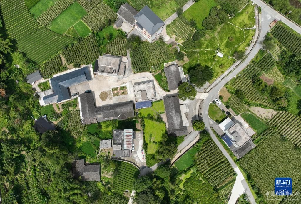 下坪鄉(xiāng)東洲村的農(nóng)家院(無人機(jī)照片,8月17日攝)。
