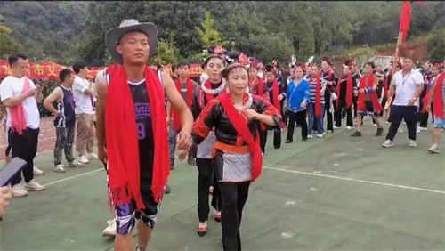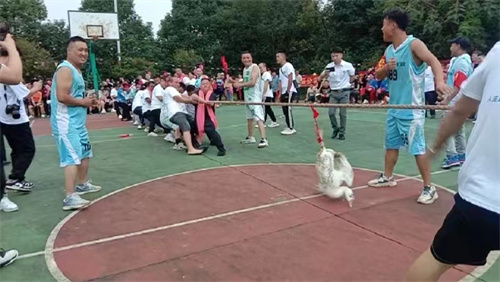 本次蘆笙會(huì),上演的節(jié)日活動(dòng)有拔河比賽、民族歌曲歌唱大賽、籃球比賽,蘆笙吹奏表演比賽等等。拔河比賽,與以往不同的是,在繩子中間還掛著一只鴨子,誰贏了,鴨子就歸誰享用?;@球大賽冠亞季軍的獎(jiǎng)勵(lì),除了獎(jiǎng)金外,還有山羊、雞鴨、鵝,很富有創(chuàng)意。