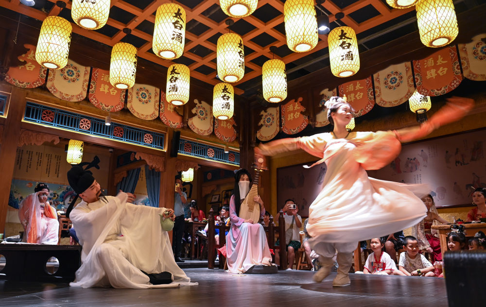 西安大唐不夜城,從寫滿詩詞的燈飾下穿行,與唐裝“仕女”擦肩而過,“李白”正于燈火闌珊處邀游客吟詩作對。走進“長安十二時辰”主題街區(qū),恍若夢回大唐,數(shù)十臺唐文化主題演藝一步一景。歷史文化融入主題演藝,文旅消費活力激增。